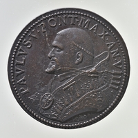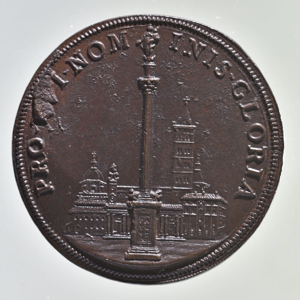 Maggiore-i oszlop felállításának emlékére. Előlap: gyöngysoros keretben a pápa mellképe bal nézetből, vállán palást, a hímzett szegélyen palmettás hímzés. Hátlap: gyöngysoros keretben áll a római Santa Maria Maggiore bazilika előtt, a "Mennyek Királynője" szobor, háttérben a székesegyház épülete.