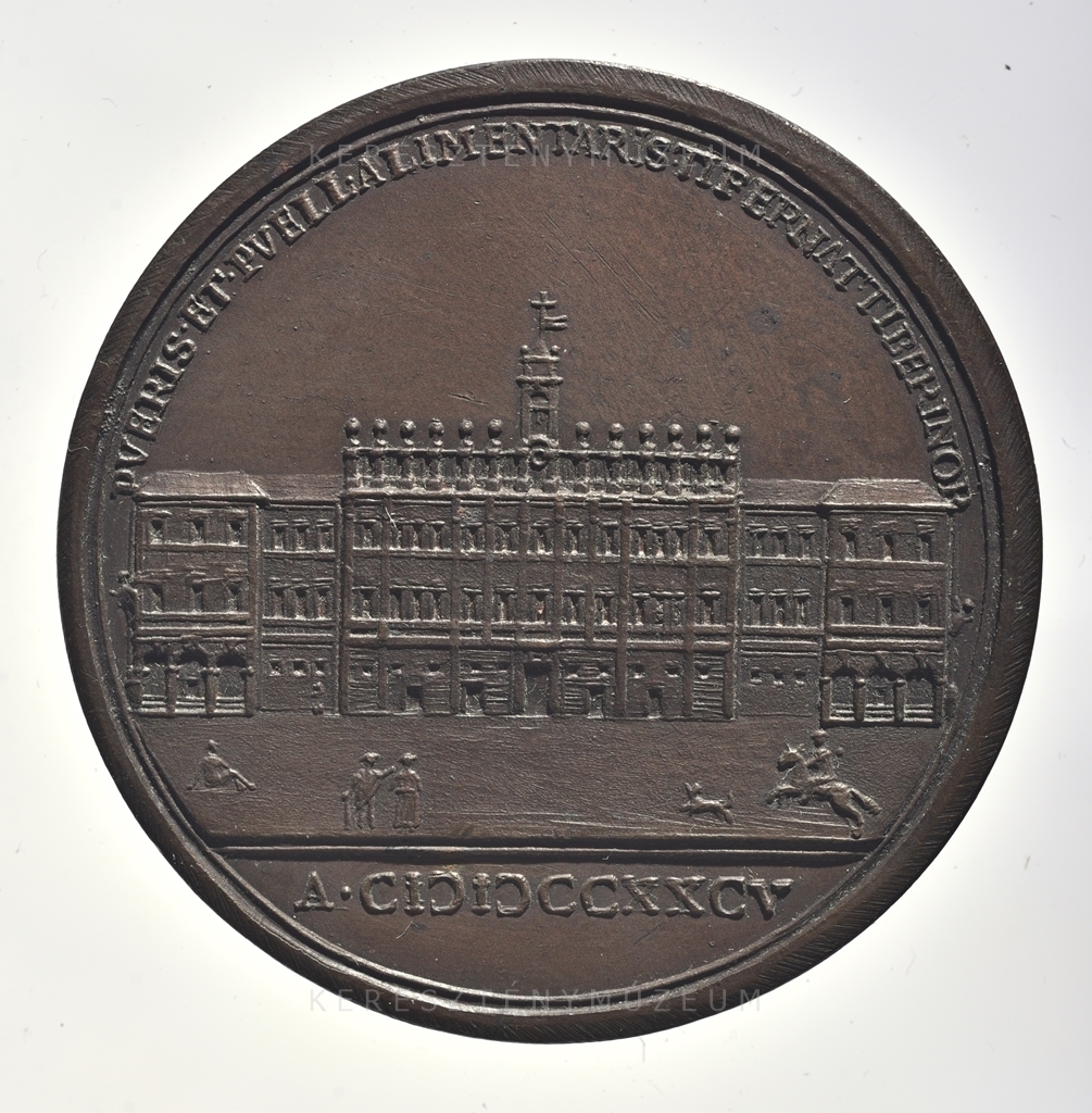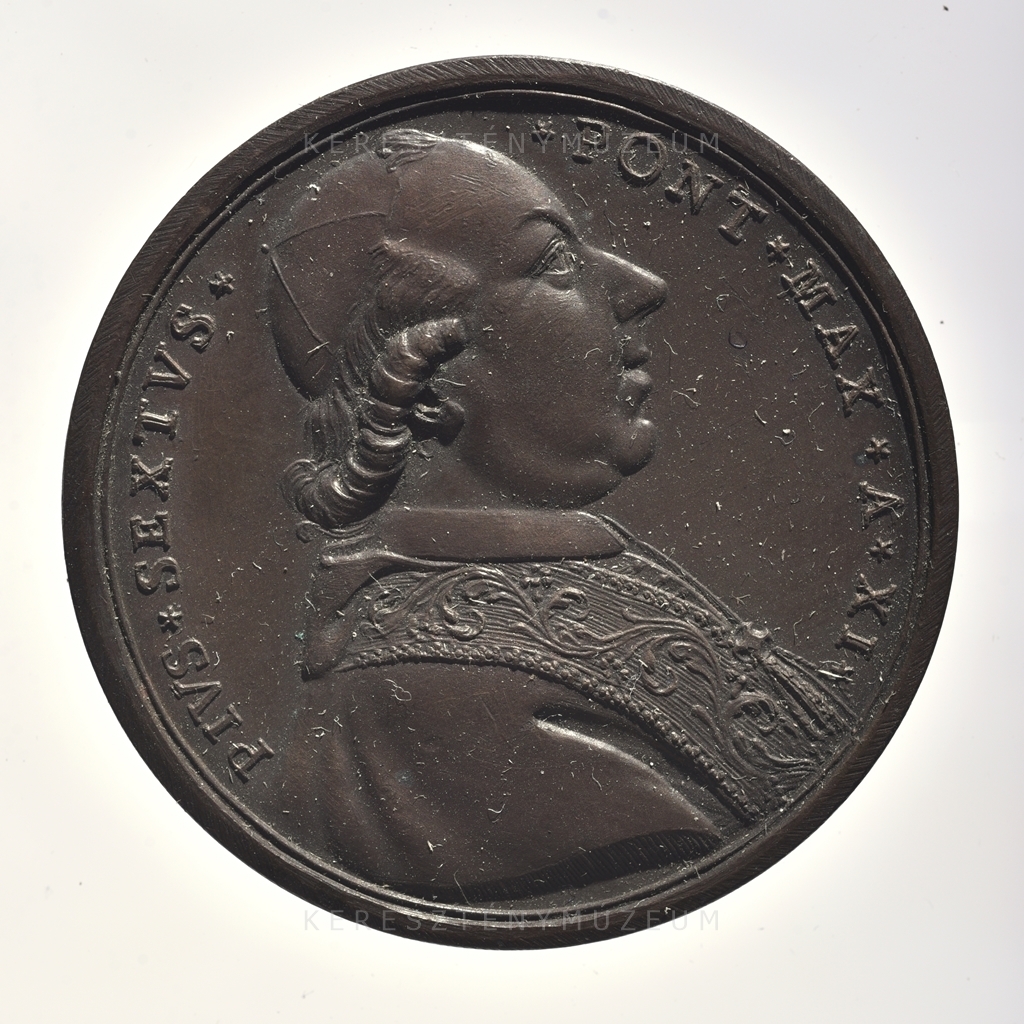 Éves érem, 1785. június. 26-án adták ki a Città di Castello-i új Kórház építésének emlékére. Előlap: a pápa portréja jobb profilból. Fején pileolus, vállán mocétum és stóla. Hátlap: a kórház épületének homlokzati képe.