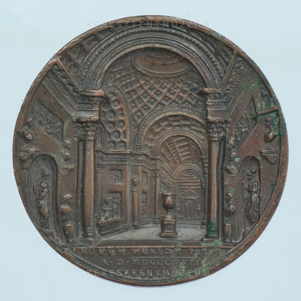 Éves érem, amelyet 1822. 06. 29-én adtak ki a Vatikáni Múzeumok bővítésének és a Chiaramonti Múzeum megnyitásának emlékére. Előlap: a pápa arcképe jobb nézetből. Fején tiara, vállán pluviálé, melynek hímzett bordűrjén, kettős kereszttel koronázott családi címere. Hátlap: a Vatikáni Múzeum új kiállítóterének látképe.