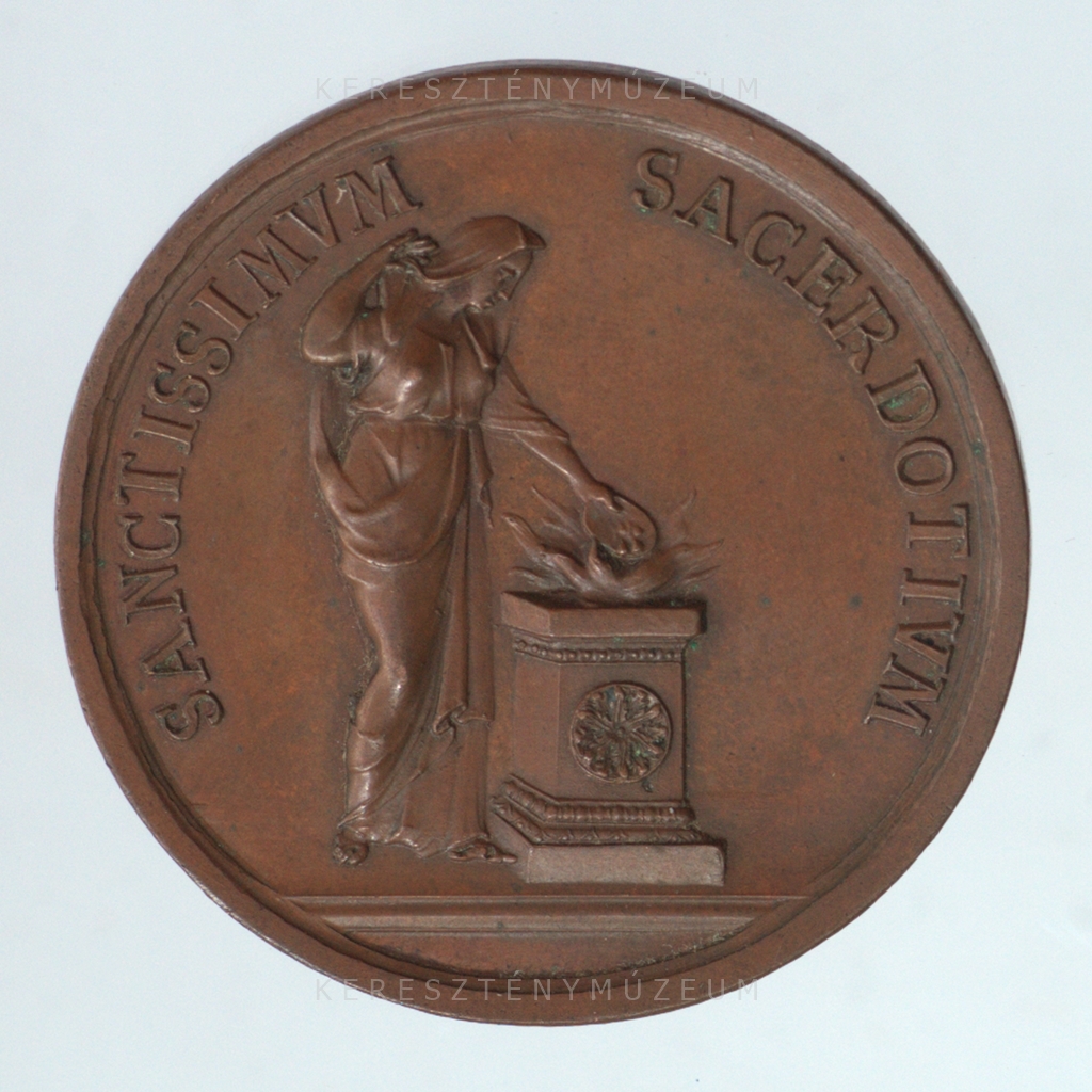 Dátum nélkül vert érem, amelyet a Jézus Társasága Rendjének Portugália támadásaival szembeni védelmének emlékére adtak ki. Előlap: a pápa mellképe jobb nézetből. Fején pileolus, vállán mocétum és stóla. Hátlap: Vesta-papnő áll oltár mellett, táplálja a szent tüzet.