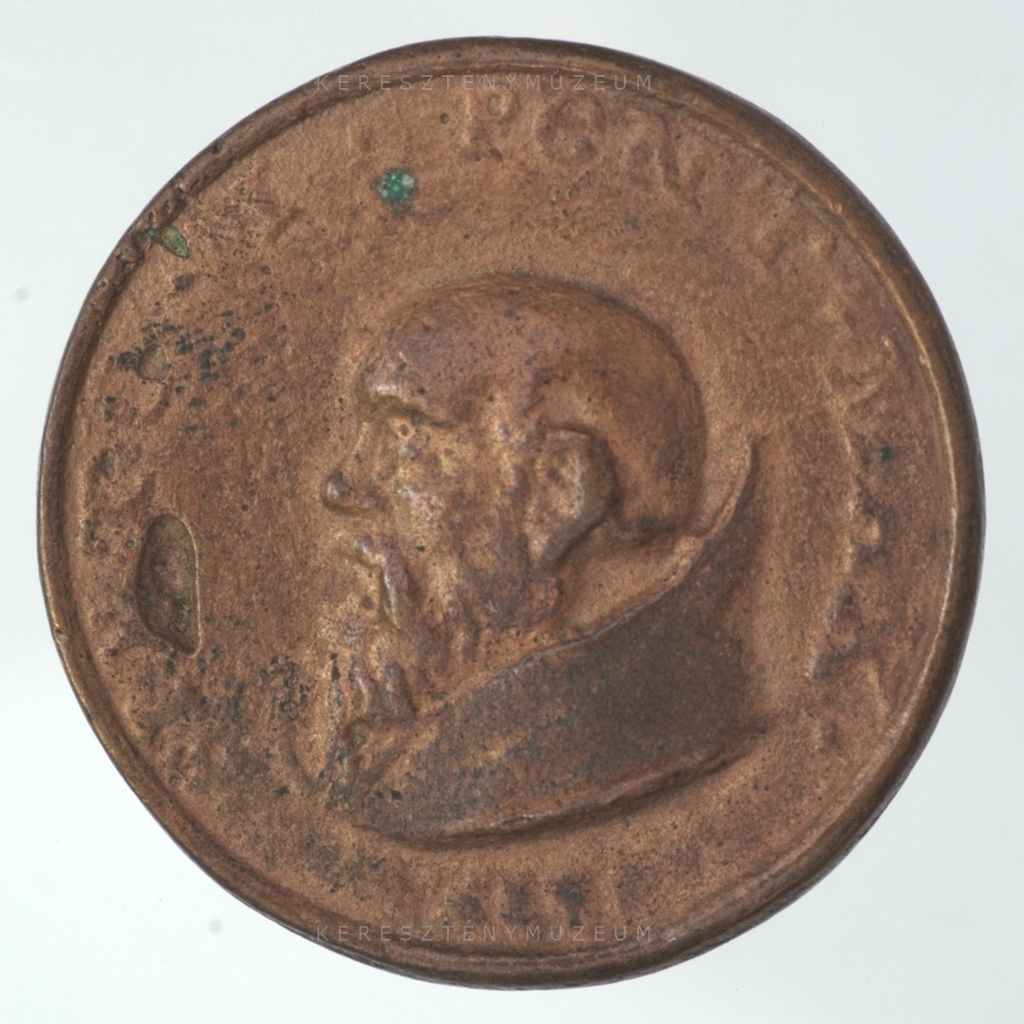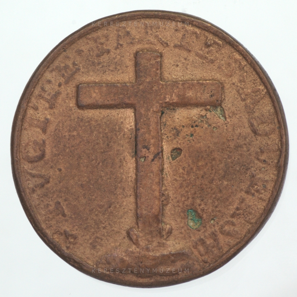 Enyhén kopott érem, szulfátos kicsapódások és öntési üregekkel. Előlap: a pápa balra tekintő mellképe, vállán palást, feje fedetlen. Hátlap: dombon álló, üres, latin kereszt.
