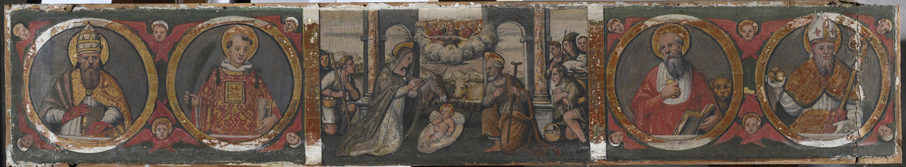 Hármas predella: Jézus születése, Szent Gergely, Szent Julianus, Szent Miklós
