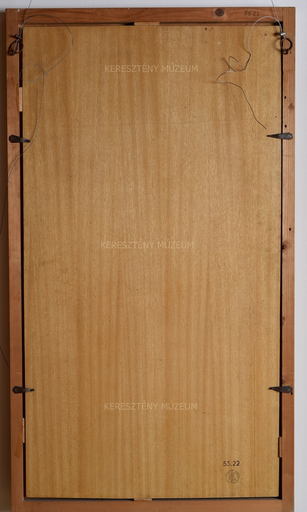 The panel was purchased along with its sawed-off reverse showing the Twelve-Year-Old Jesus in the Temple and two other panels (55.20/55.21) for 1000 gold crowns by Prince Primate János Csernoch (cf. the registry of the office of the archbishop) from the Roman Catholic parish of Aranyosmarót between 1913 and 1916. Before 1911, the four panels hung in the parish of Aranyosmarót. They may very well have come from the private collection of Kristóf Migazzi after Migazzi purchased them and other works in the environs of Vienna.