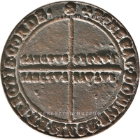 Sima perem, patinázott. Előlap: jobb profilú mellkép, vállán palást, feje fedetlen. Hátlap: belső gyűrűben egyenlő szárú kereszt, szárakon felirat