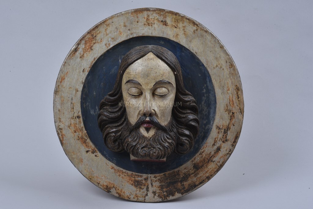 The painting of the plate in the Christian Museum’s collection was infilled in large areas; its rim was originally silver gilt. The head was affixed with a wooden peg.