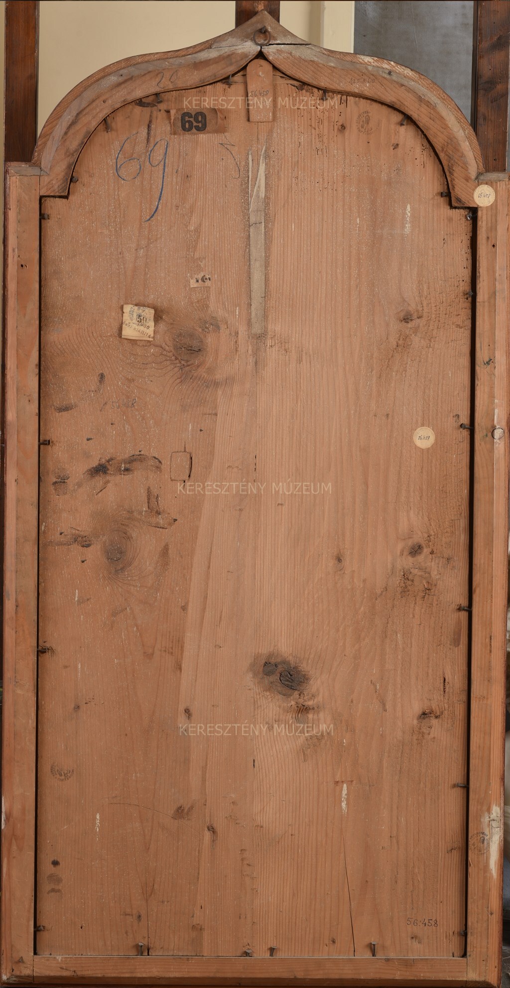 Ipolyi Collection. ‘135. Picture in two parts, one half shows Mary, the other St. John the Baptist. Panel. Imitates the style of the 17th c.’ (Lakatos-Balla 290)