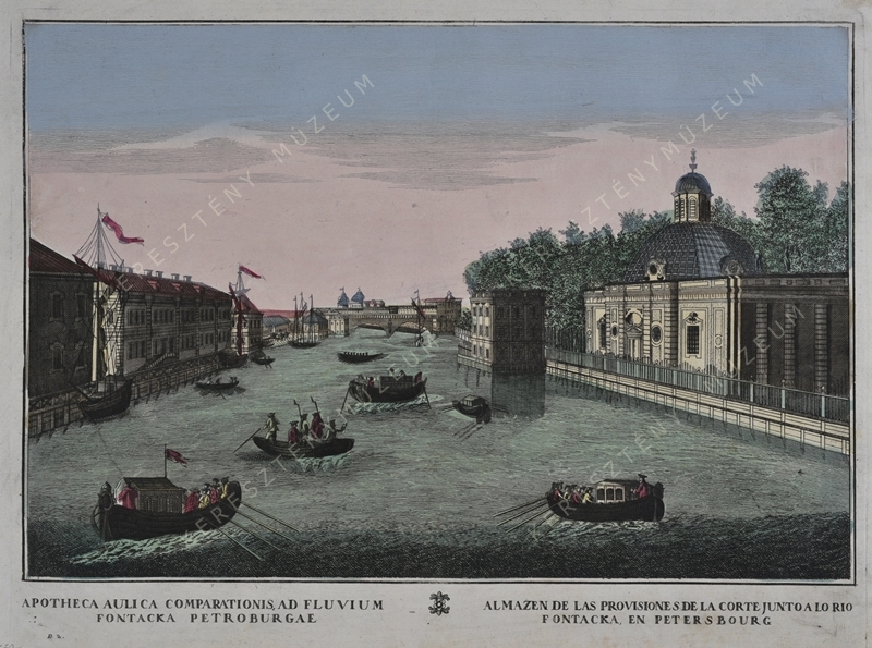 APOTHECA AULICA COMPARATIONIS, AD FLUVIUM / FONTACKA PETROBURGAE // ALMAZEN DE LAS PROVISIONES DE LA CORTE JUNTO A LO RIO / FONTACKA, EN PETERSBOURG Egyéb felirat: A bal alsó sarokban: D 2.