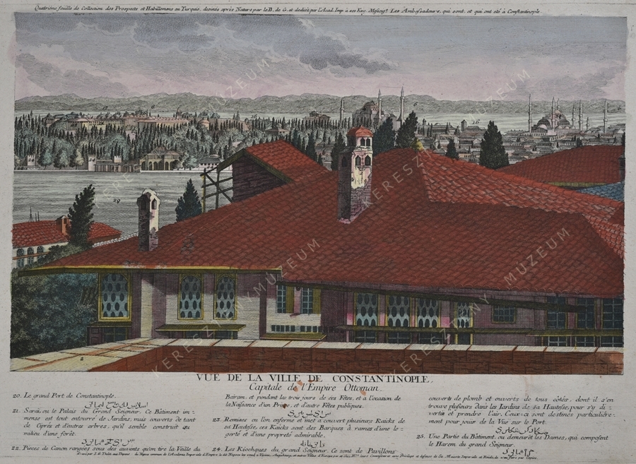 Cím: VUE DE LA VILLE DE CONSTANTINOPLE Capitale de l'Empire Ottoman. | Quatrieme feuille de Collection des Prospects et Habillemens en Turquie, desinés après Nature par le B. de G. et dediés, par l'Acad. Imp. à ses Exc. Messeig.s Les Ambassadeurs, qui sont, et qui ont eté à Constant.