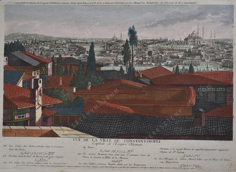 Cím: VUE DE LA VILLE DE CONSTANTINOPLE Capitale de l'Empire Ottoman. | Cinquieme feuille de Collection des Prospects et Habillemens en Turquie, desinés après Nature par le B. de G. et dediés, par l'Acad. Imp. à ses Exc. Messeig.s Les Ambassadeurs, qui sont, et qui ont eté à Constantinople.