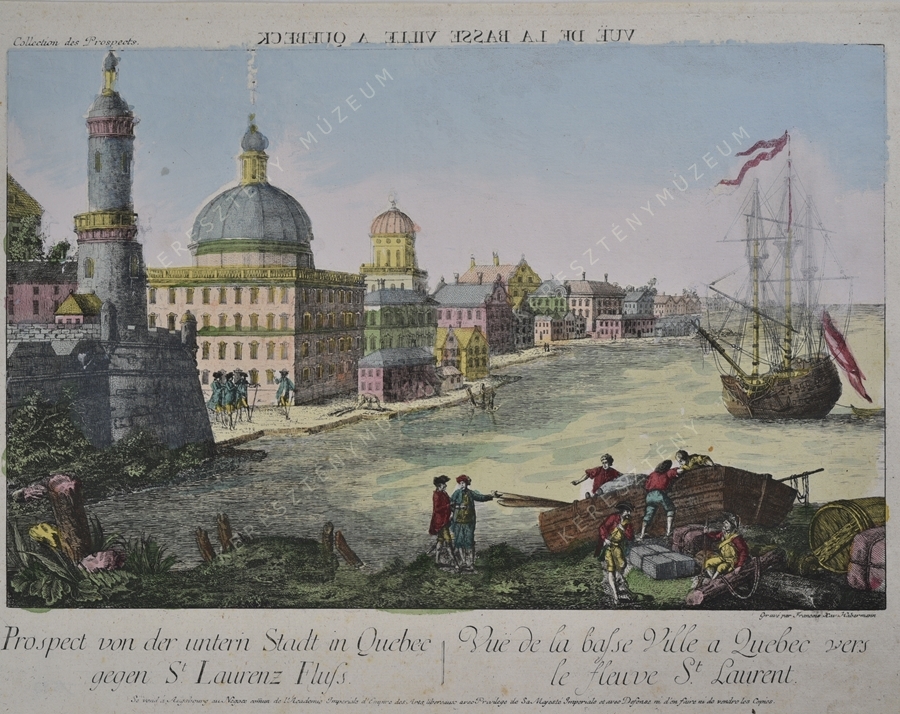 Prospect von der untern Stadt in Quebec / gegen St. Laurenz Fluß. // Vue de la basse Ville a Quebec vers / le fleuve St. Laurent.